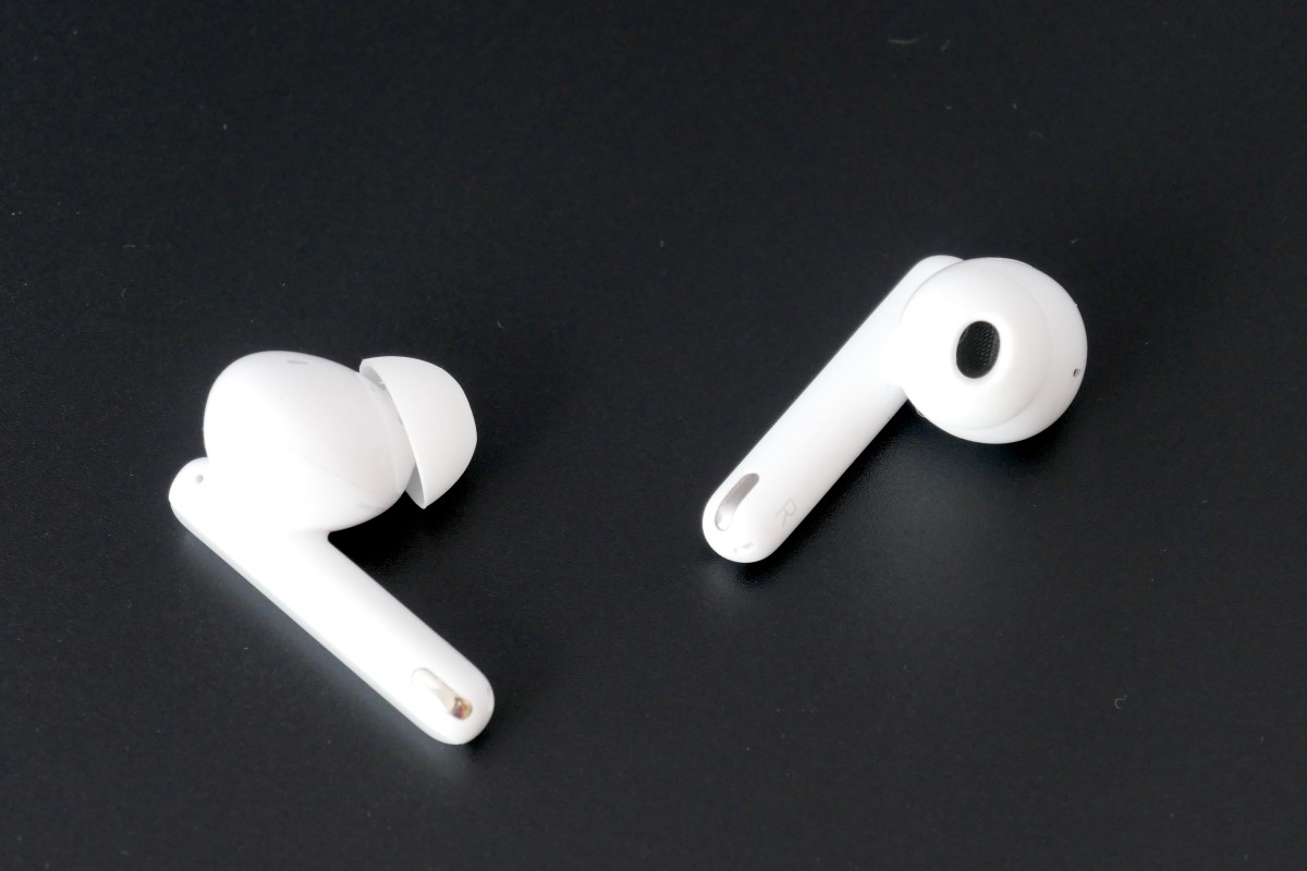 LIVE PRO+はアップルのAirPodsシリーズに代表されるスティック型デザインとした完全ワイヤレスイヤホンです。左右スティックの先端には通話専用のビームフォーミングマイクを内蔵。ハウジングの厚みが約14ミリとスリムなので、装着した状態でイヤホンが耳から飛び出ているように見えない軽やかな着こなしスタイルも魅力的です。