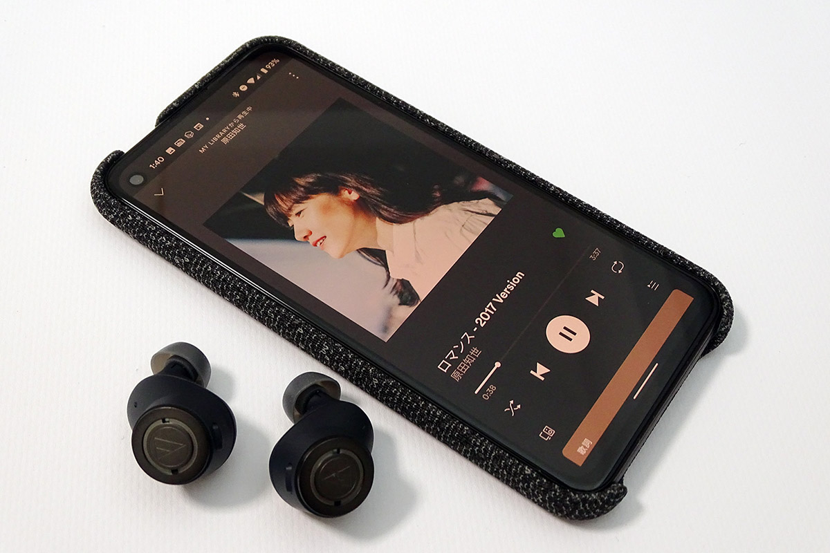 初期設定後、「YouTube Music」や「Spotify」で音楽を聴いてみました。最近のJ-POP、K-POP、80年代の洋楽など、いろんな楽曲を聴き比べてみましたが、低音域から高音域まで歪みがなく豊かでクリアに聴こえました。ボーカルの細かい息づかいなども聴き取れます。筆者は、現在3つのワイヤレスイヤホン(AirPods、Galaxy Buds、Soundcore Liberty Air2)を使っているのですが、それらと比べても音質は良いほうだと感じました。