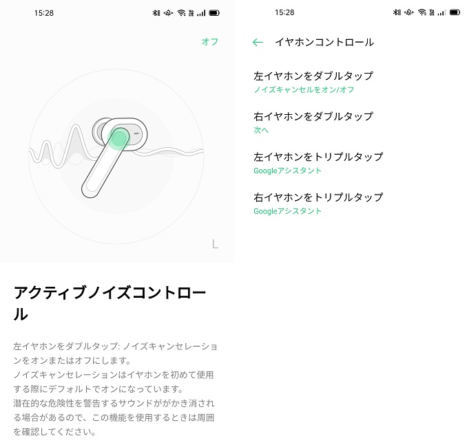 アプリは完全ワイヤレスイヤホンは初めてという方でも直感的にすぐ使いこなせるよう、とてもシンプルなユーザーインターフェースにしています。探している機能に素速くたどり着けます。ノイズキャンセリング機能は強く効果がかかるAirPlaneから順にOn The Go/Office-Studyまで、切り換えて効果を確認しながらリスニングシーンに合ったシーンが選べます。