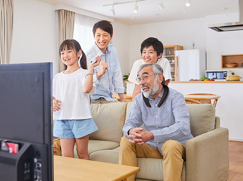 音声面では、2.1ch3ウェイ5スピーカーで構成される「FRONT OPEN SOUND SYSTEM PLUS」(※)を採用し、聞き取りやすく臨場感豊かなサウンドを再生します。明るいリビングでも反射を抑える「低反射パネル」や、画面角度を調整できる「回転式スタンド」など、日本の視聴スタイルに合った機能も搭載しています。
