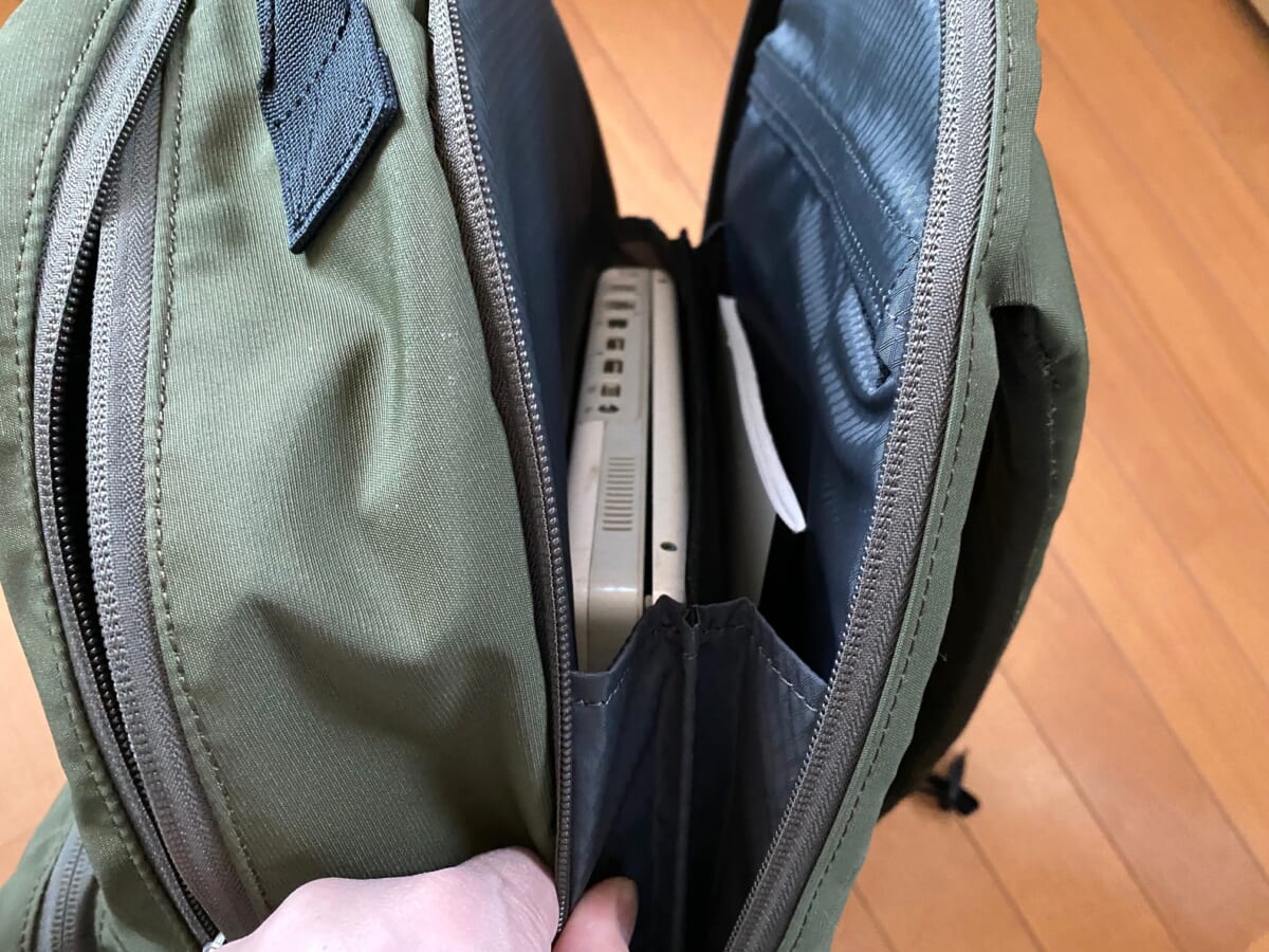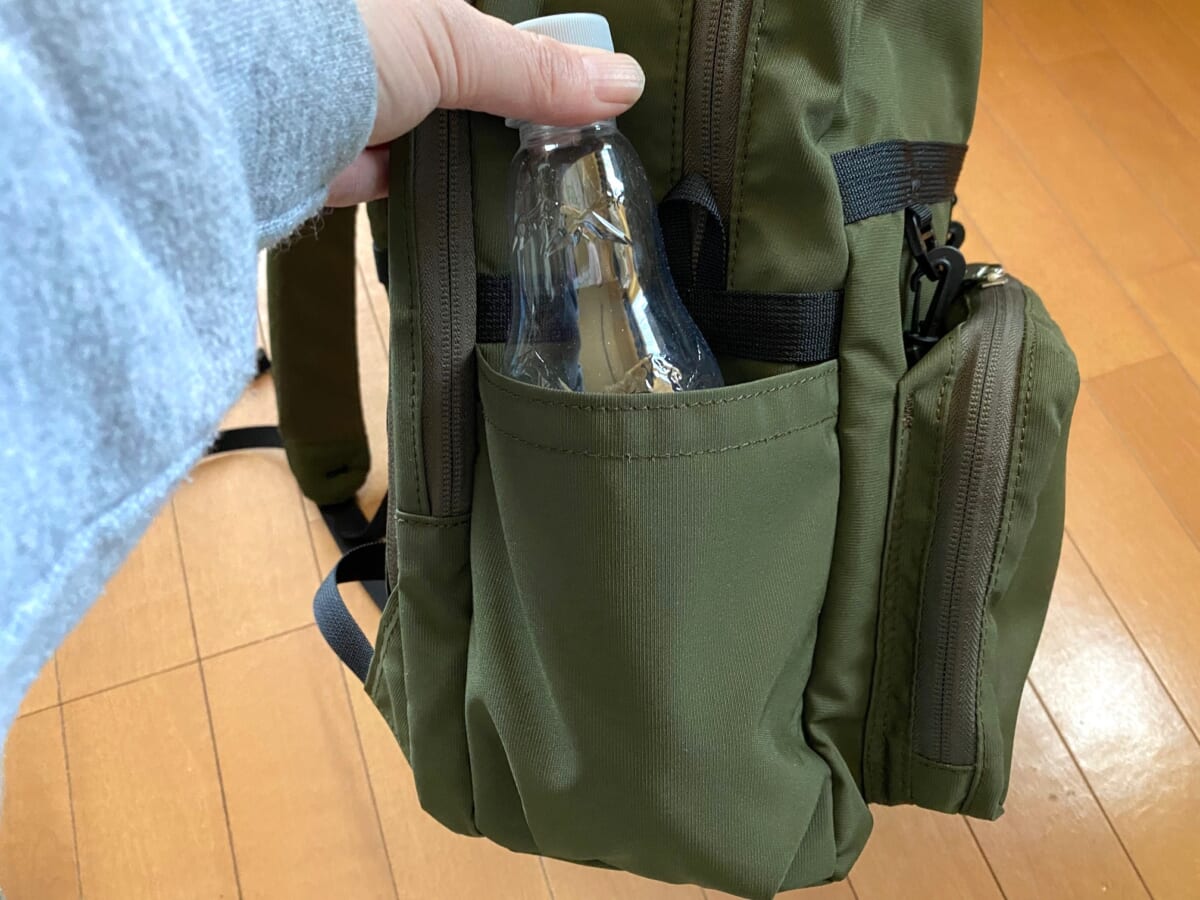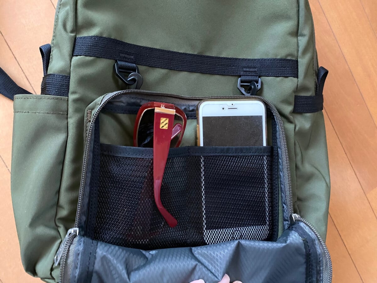 シンプルなデザインと機能的なポケットを多数備えた今作の注目すべきポイントは本体の素材。アメリカのSAFETY COMPONENTS社がSatura(R)社の糸で織り上げた生地「WEATHER MAX(R)」 を使用しており、通気性と生地の安定性を保ちます。さらに仕上げには Hydro Max TM加工を施し、通気性と生地の安定性を保ちながら、高い撥水性を備えています。そして多くの機能的ポケットを備え、マチ部分のポケットにはカードケースポケットを付属。取り外してミニポーチとしても使えます!