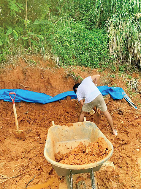 ↑軍手を着用して、親指は伸ばさず第一関節部分をガイドにしましょう。