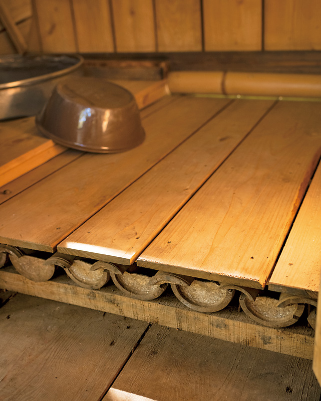 7.ウエスで木材の表面を拭き取る。