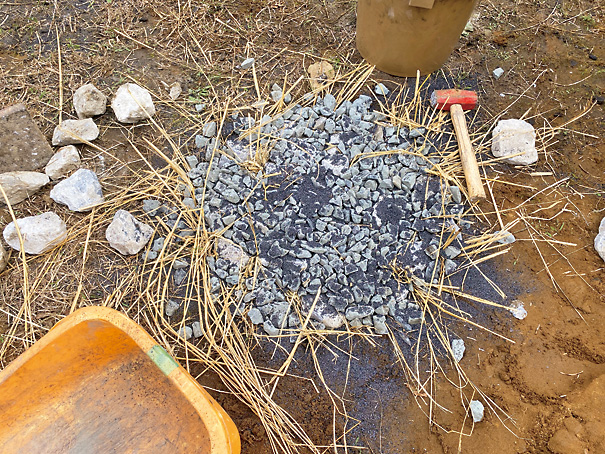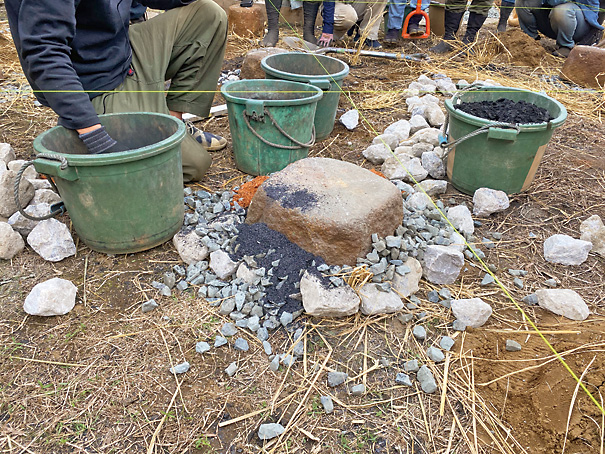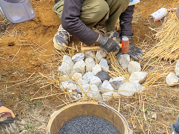↑ノミを使ったバリ取りの様子。