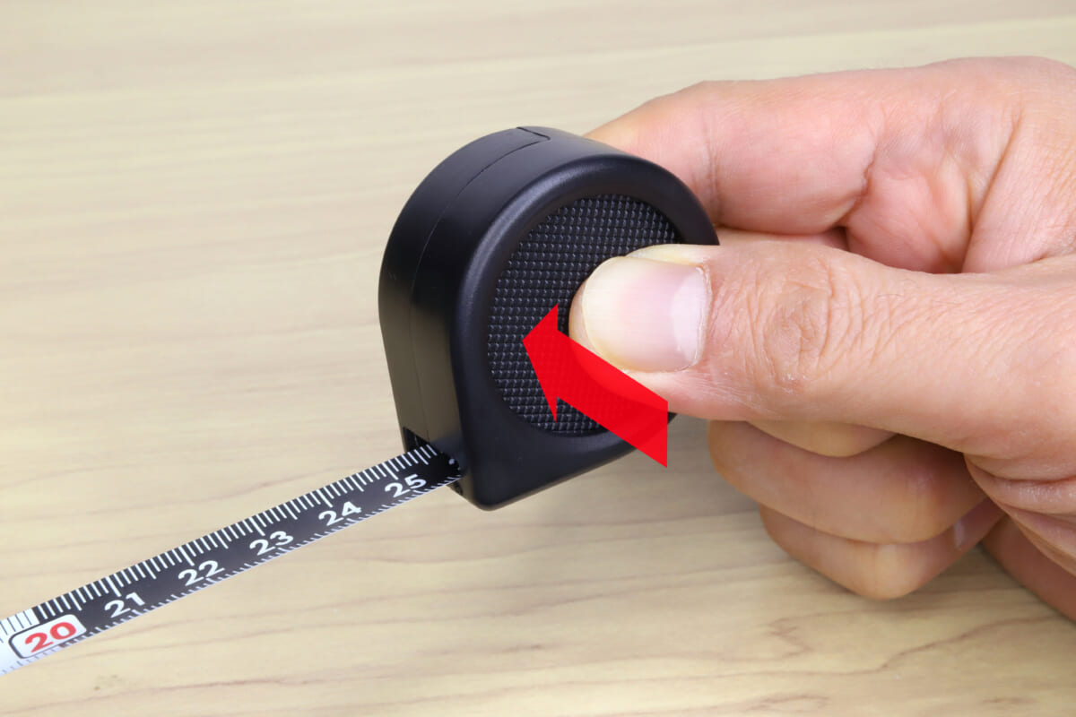 ↑コンベックスのツメをしっかりとひっかけて固定すると、誤差なく採寸できます。