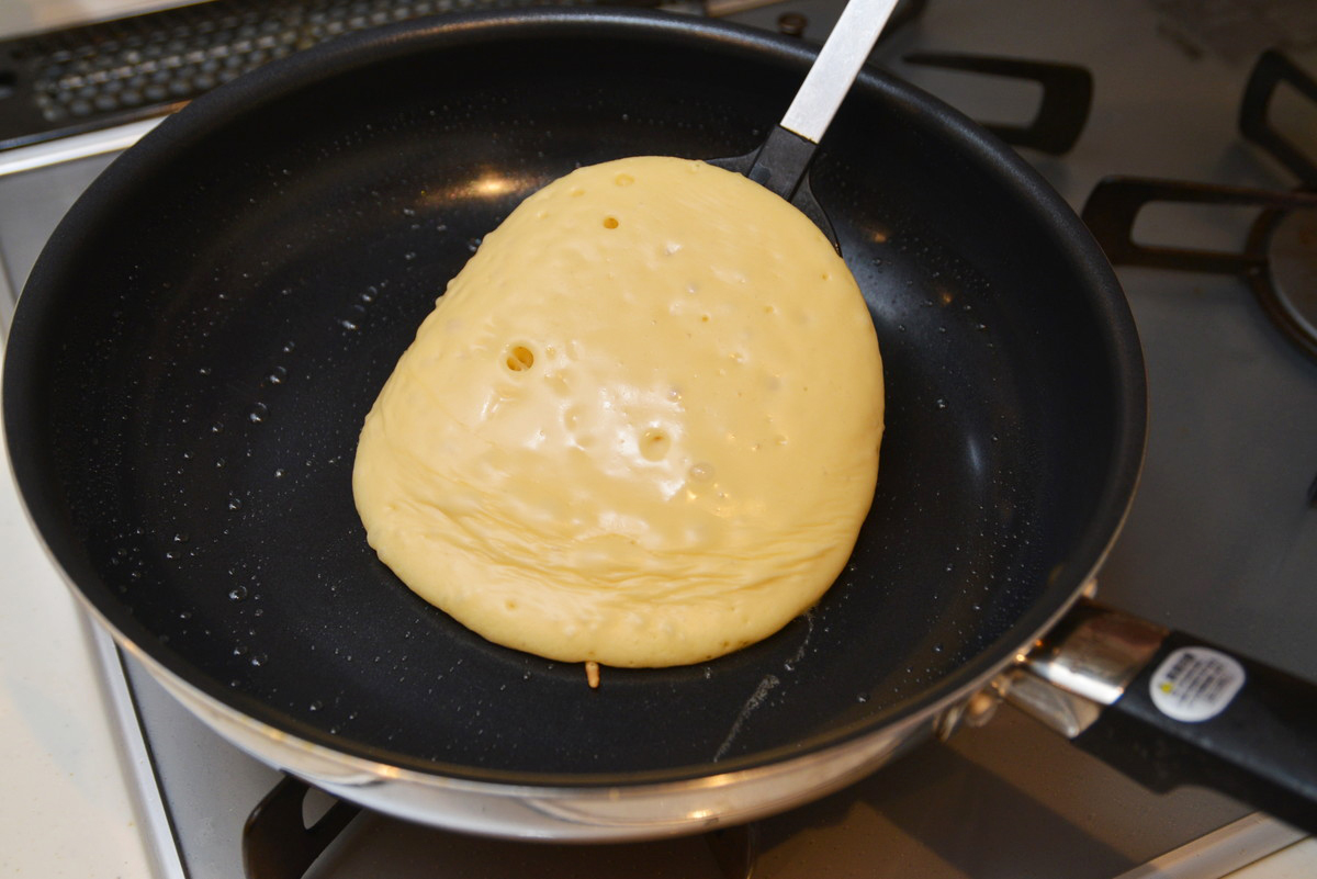 「弱火でじっくり」ホットケーキを焼いたら、もちふわ食感に