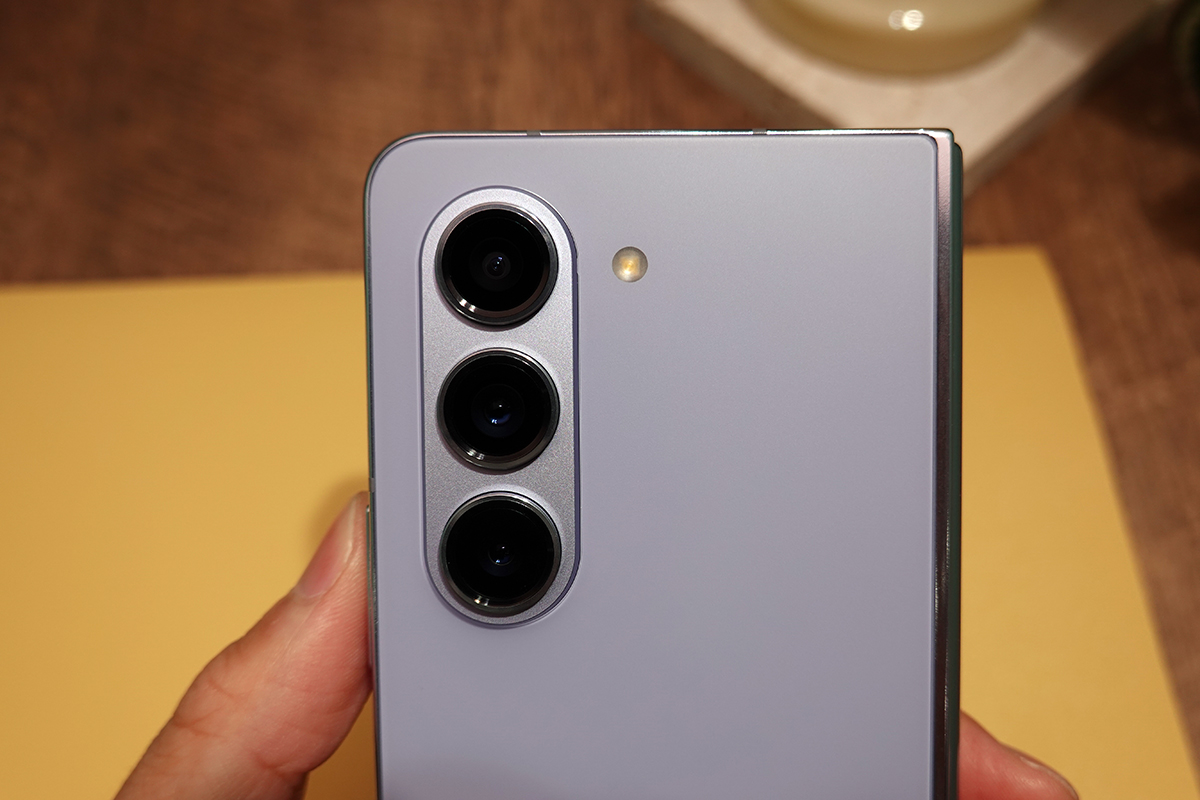 背面のメインカメラは望遠、広角、超広角の3眼仕様。Galaxy Z Flip5と同様に、背面カメラを使ったセルフィーもできます。インカメラは内側ディスプレイの画面下に目立たないように備えており、開いた状態でもカメラによる顔認証が利用できます。