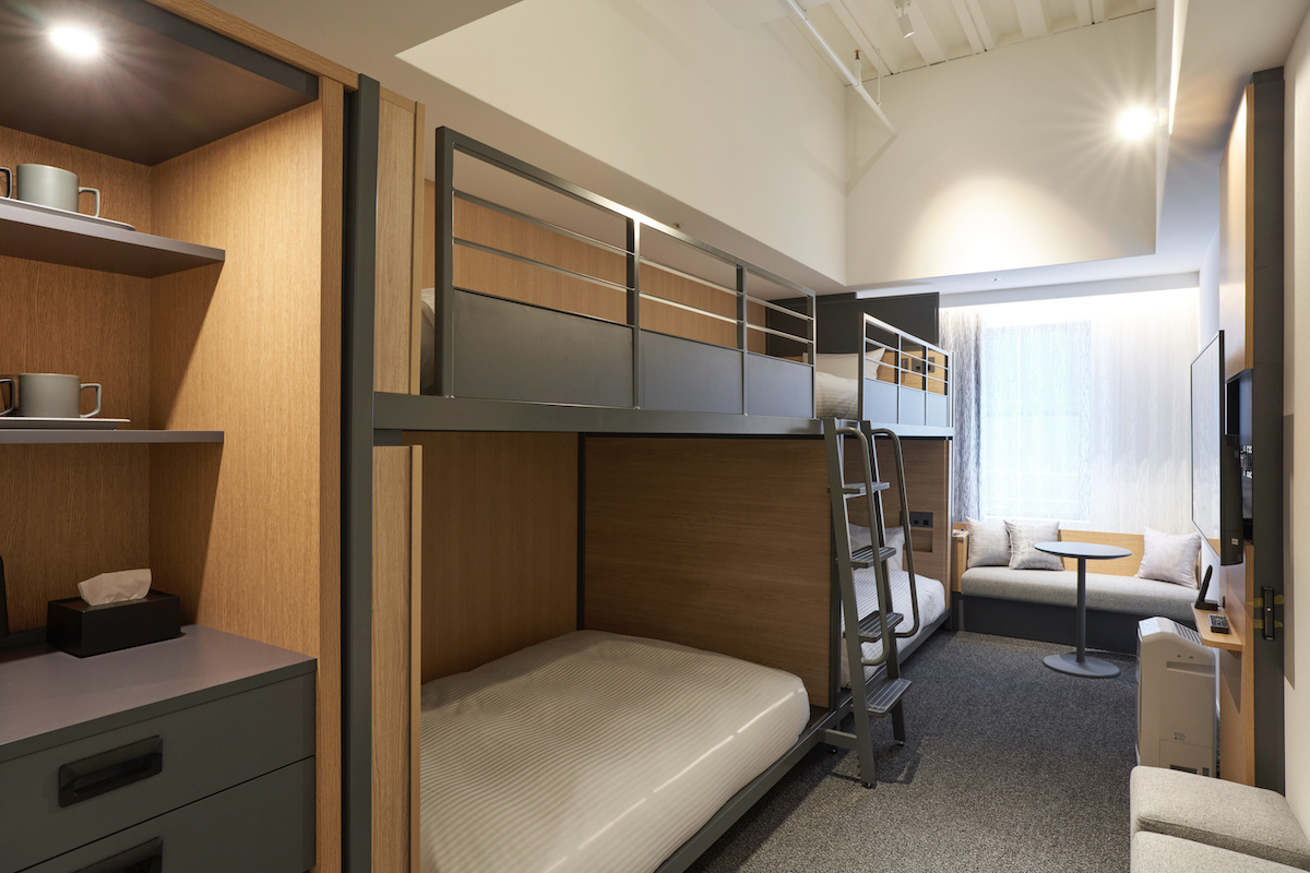 ↑クロスライフ博多天神には、4名を収容できる「ロフトツイン」が11室あるのが特徴