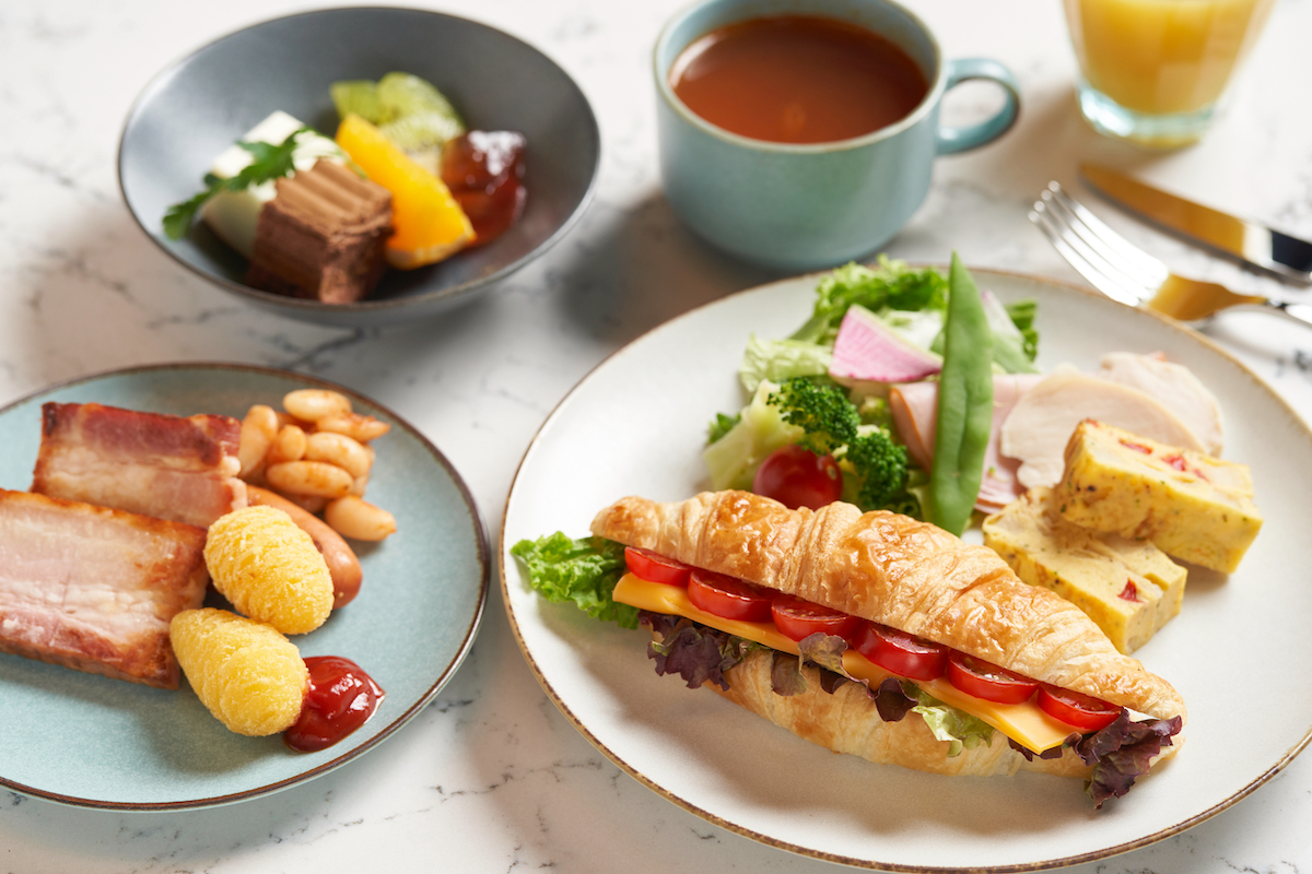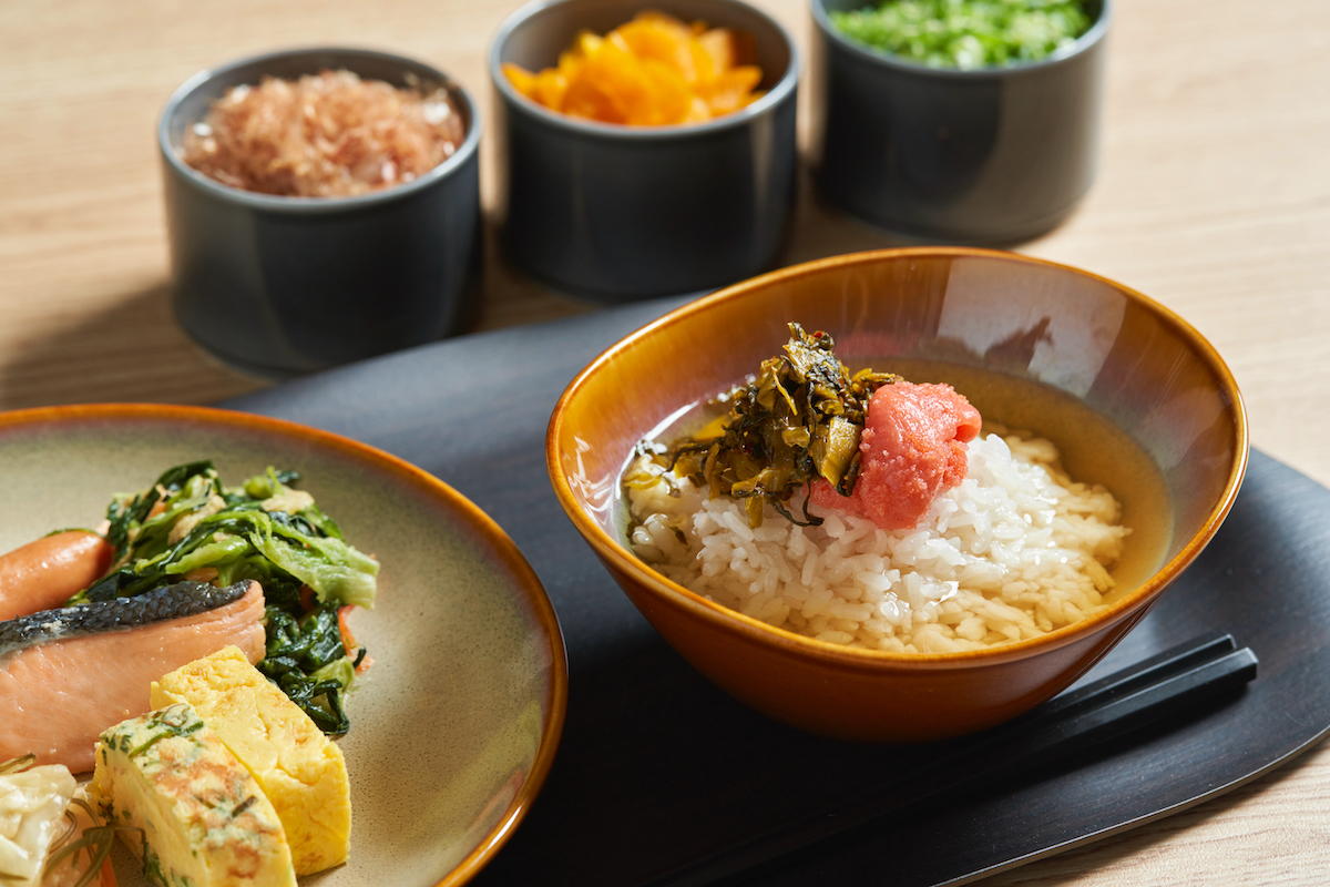 ↑提供される朝食(ビュッフェスタイル)の一例。博多らしい食材も堪能できるのがうれしい