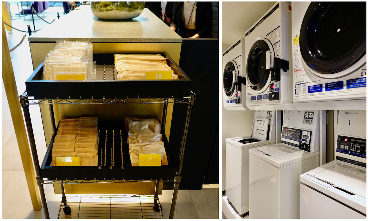 ↑アメニティはフロントに用意されており、必要な分だけゲストがピックアップするスタイル。また、館内にはランドリールームも。このあたりはカジュアルホテルらしい