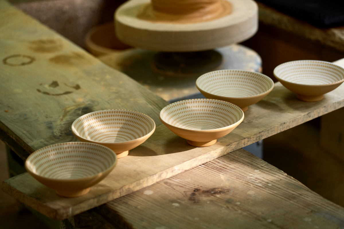「Play with Local 〜地域と一緒に〜」をもっともわかりやすく体現するのが、クロスライフ博多柳橋に導入された小石原焼(こいしわらやき)の数々。小石原焼とは、ろくろを回しながら器に幾何学的な模様をつけていくのが特徴の、博多織や久留米絣と並ぶ福岡の伝統工芸だ。50軒ほどの窯元が現存しているという。