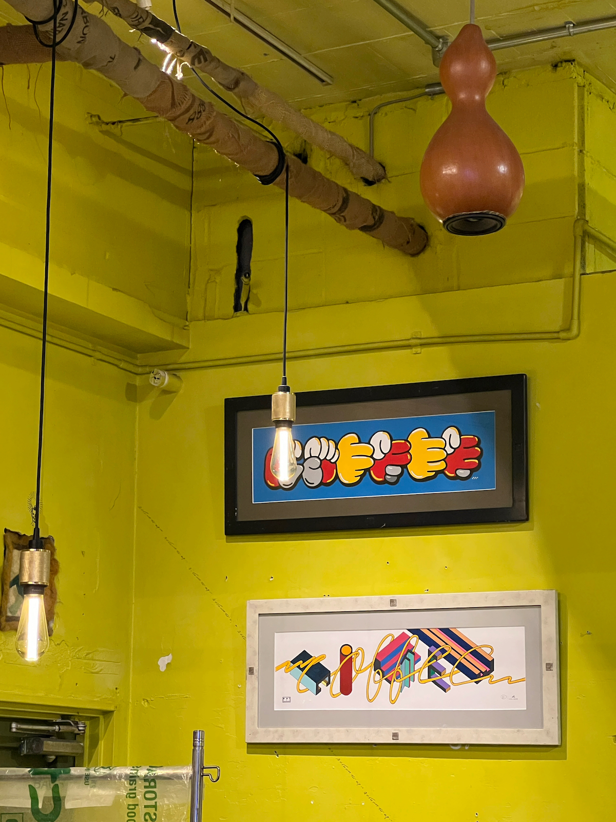 ↑コーヒーのおいしさに、マヌコーヒーの実店舗を訪れた。サイケデリックなコーヒーを目指す、と内装にも世界観が表れている