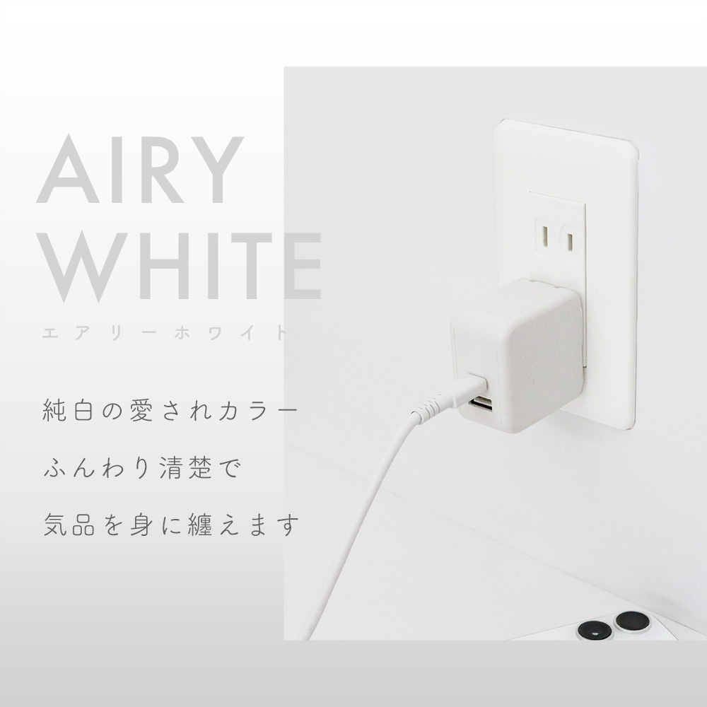 USB AとUSB Type-Cの2ポートを備えたAC充電器。PD65W出力に対応(USB Type-C単体使用時)し、ノートパソコンの充電も可能。2ポート同時使用時は45W+18Wの合計63W出力で、スマホの急速充電も可能です。 デバイスに合わせて最適な給電を可能にする「かしこく充電」対応。カラーは全7色。