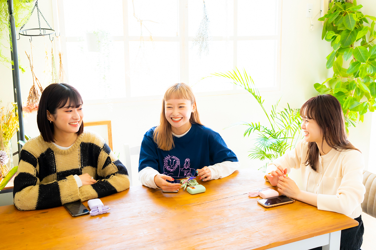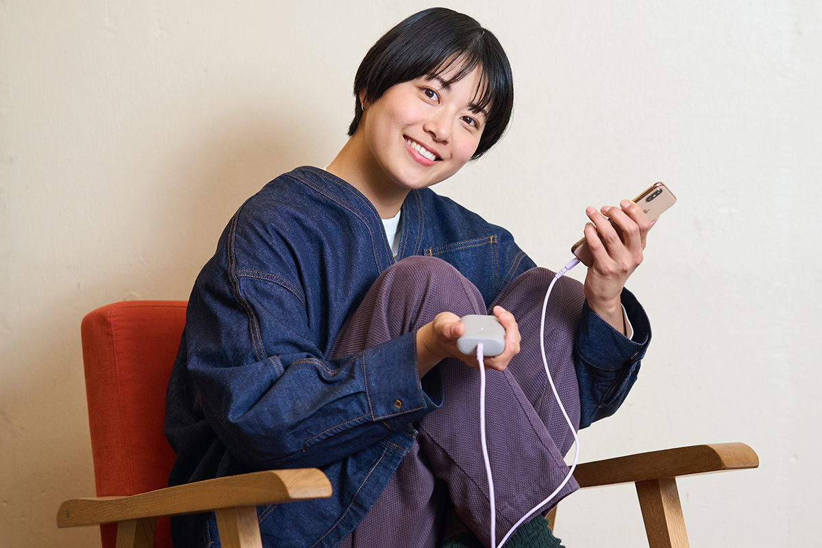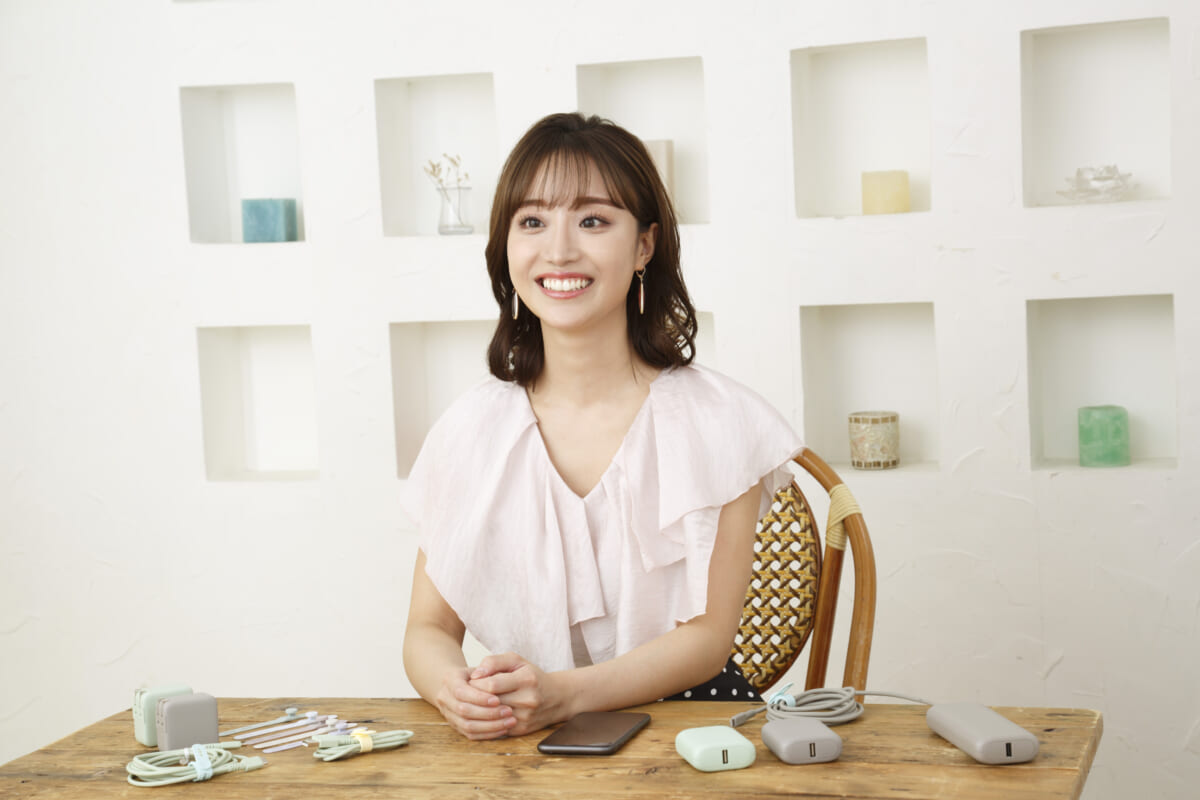 「充電ケーブルは断線に強く、USB Power Deliveryにも対応しているので、早く充電できるから、外出先でもお仕事しているサラリーマンにもおすすめですし、子育て中のママとかにも良さそうですよね。今の時代、スマホを充電しない日ってないと思うので、その充電している時間に彩りを添えてくれるアイテムだと思いますよ」