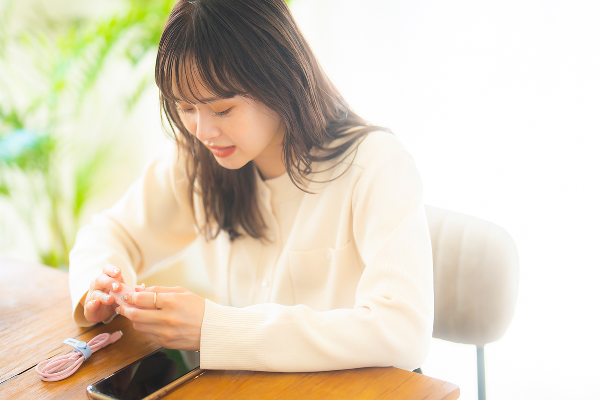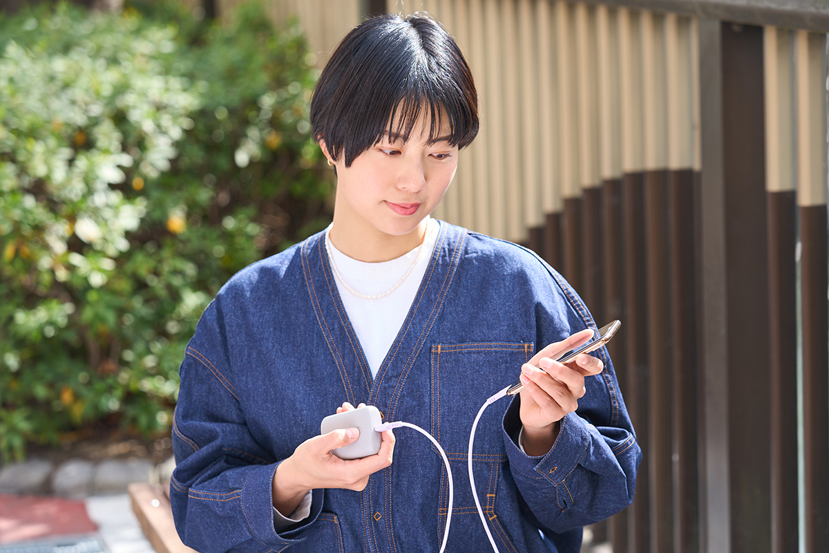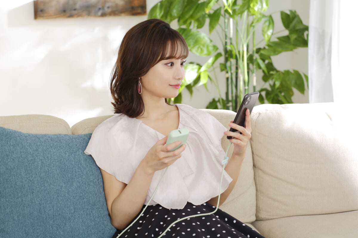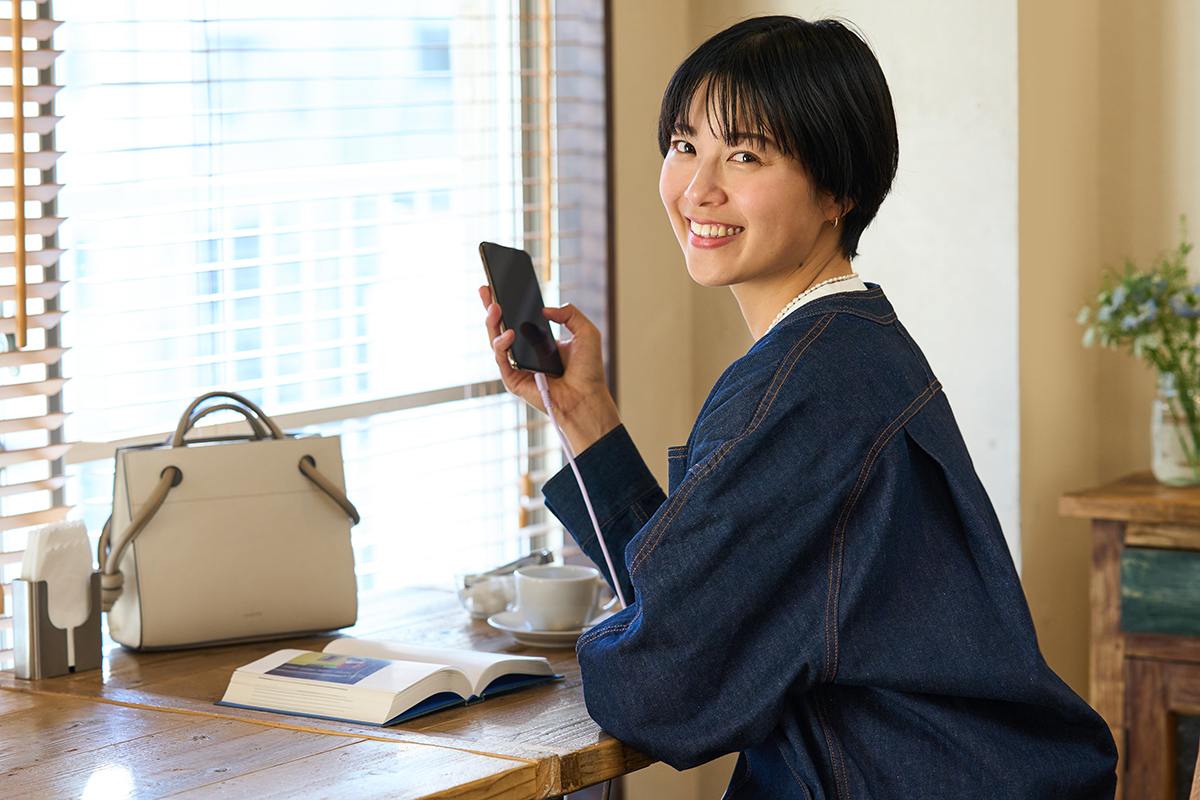 「充電ケーブルは断線に強く、USB Power Deliveryにも対応しているので、早く充電できるから、外出先でもお仕事しているサラリーマンにもおすすめですし、子育て中のママとかにも良さそうですよね。今の時代、スマホを充電しない日ってないと思うので、その充電している時間に彩りを添えてくれるアイテムだと思いますよ」