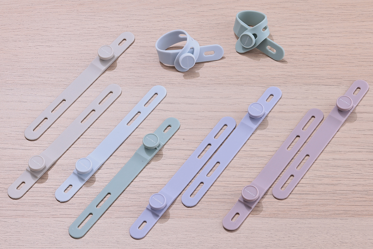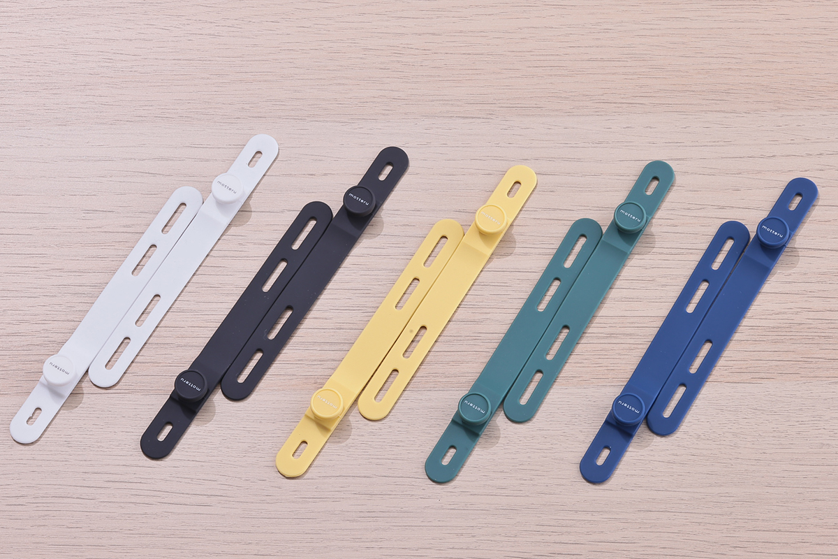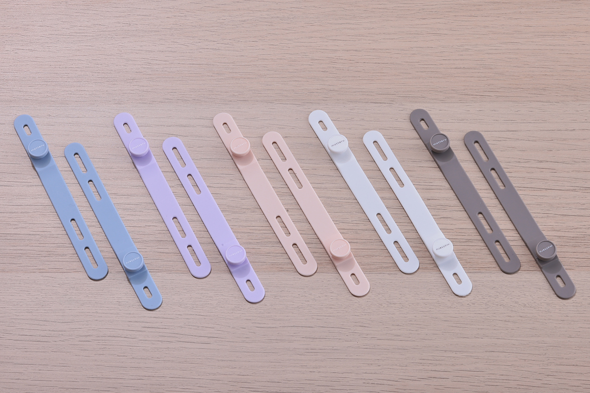 カラーリングはスモーキーブラック、エアリーホワイト、パウダーブルー、ペールアイリス、シェルピンクと、「MOTTERU」の世界観を表現する、北欧カラーを基調とした、優しく可愛らしい5色が揃っています(※USB-C to Lightningはスモーキーブラック、パウダーブルー、ペールアイリスの3色)。ケーブルはやわらかい触り心地ながらも、断線に強く、5万回の屈曲試験をクリアした耐久性も備えています