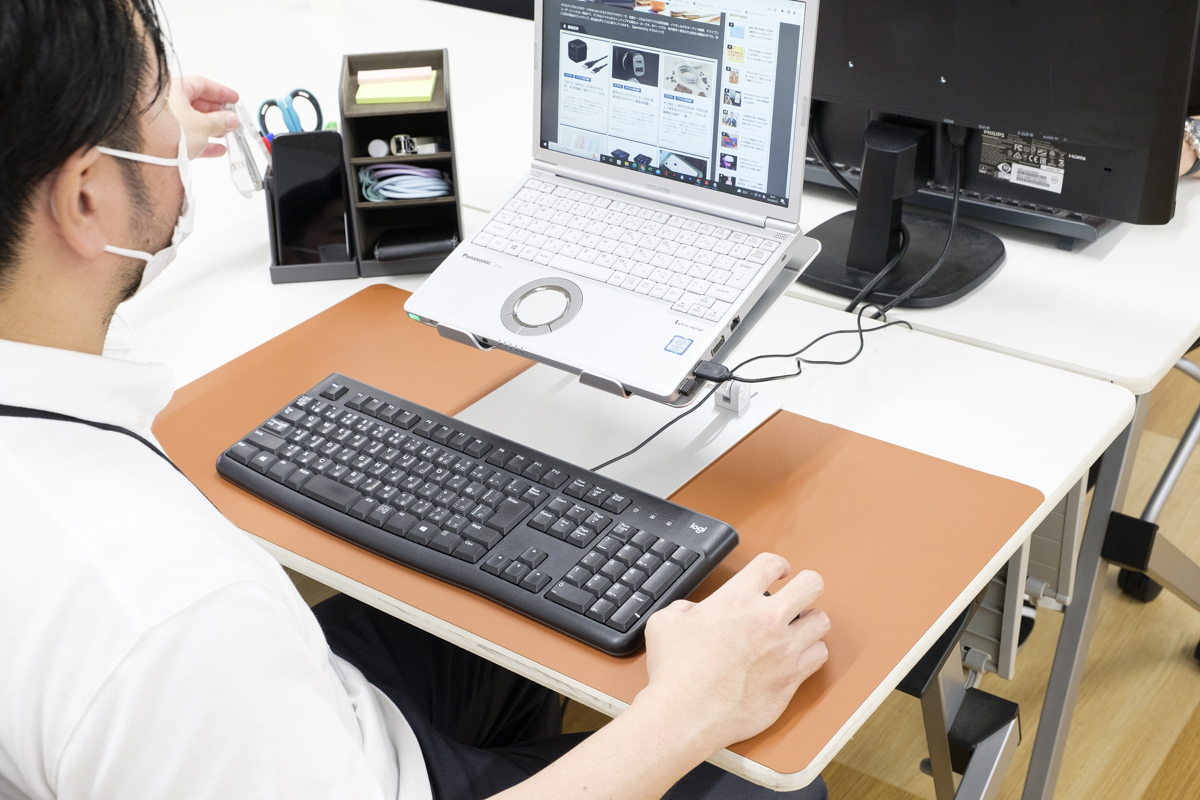 自宅だとコンセントが足りない or 電源の位置が遠い!という人もいるでしょう。そんな人には、大容量のモバイルバッテリーと充電ケーブルの組み合わせで課題解決。近くに電源コンセントがなくてもスマホを充電しながら使えます。「アルミスタンド」にスマホを置き、「20,000mAh PD60Wモバイルバッテリー」で充電すれば、スマホからオンラインミーティングに参加する場合でもバッテリー切れを心配する必要がありません。