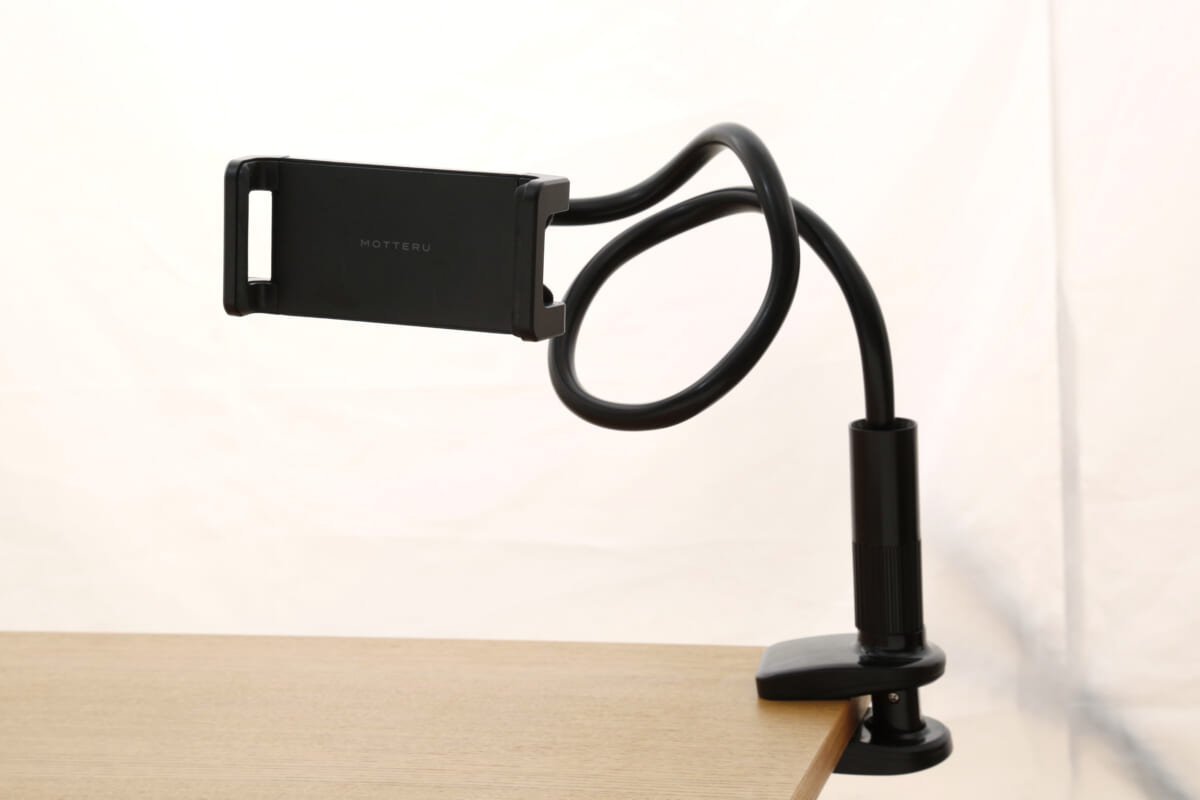 というアームホルダーですが、5月7日にMOTTERUが発売する「KUNE KUNE Arm Holder(くねくねアームホルダー)」は、「コロナ禍で、自宅で休日を過ごす人が増えるなか、ベッドやデスクなどで両手を使わずに、楽に動画視聴できるスタンドがあったら便利では」という思いから生まれたデジタルアクセサリーです。