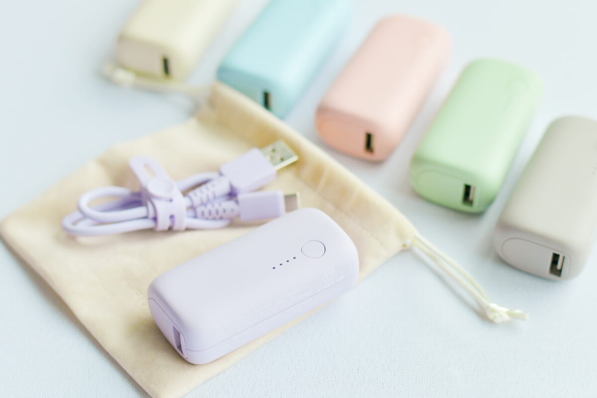 カラーは多彩な6色(ペールアイリス、ピスタチオ、ラテグレージュ、シェルピンク、パウダーブルー、アーモンドミルク)展開で、店頭向けはUSB-A to USB-C シリコンケーブル(約50cm)と専用ポーチ、シリコンケーブルバンド付属で3960円(税込)。EC向け「MOT-MB5001-EC」は、USB-A to USB-C シリコンケーブル(約30cm)と専用ポーチが付属して3280円(税込)だ。