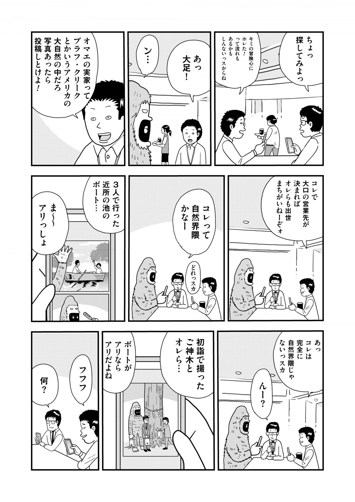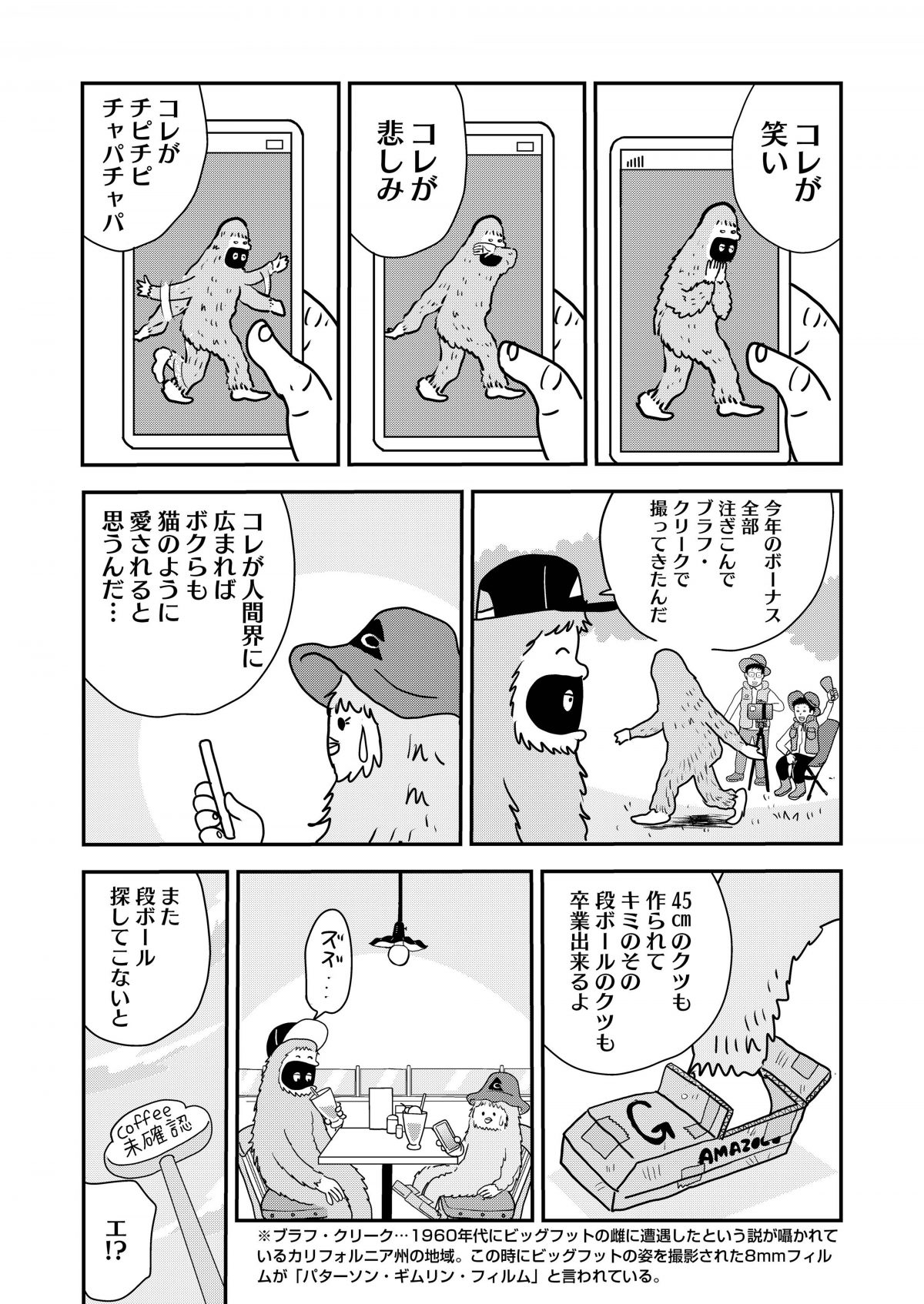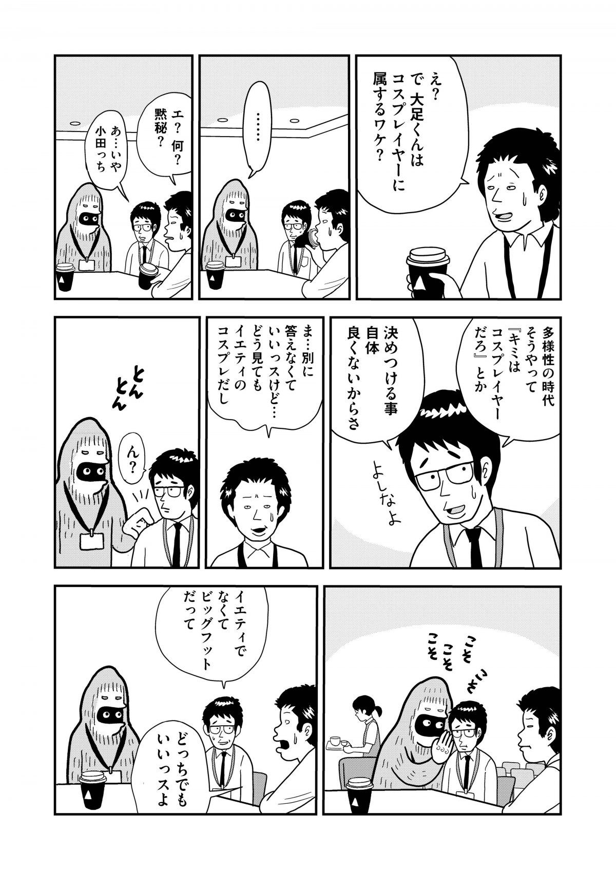 流行にうるさいミーハーな小田っち、いつも冷静で優しい先輩、そして無口でシャイなビッグフットの大足くん。本作はそんな人間2人とUMA1体で、巷で話題のトレンドについてダラダラだべるゆったりコメディです!