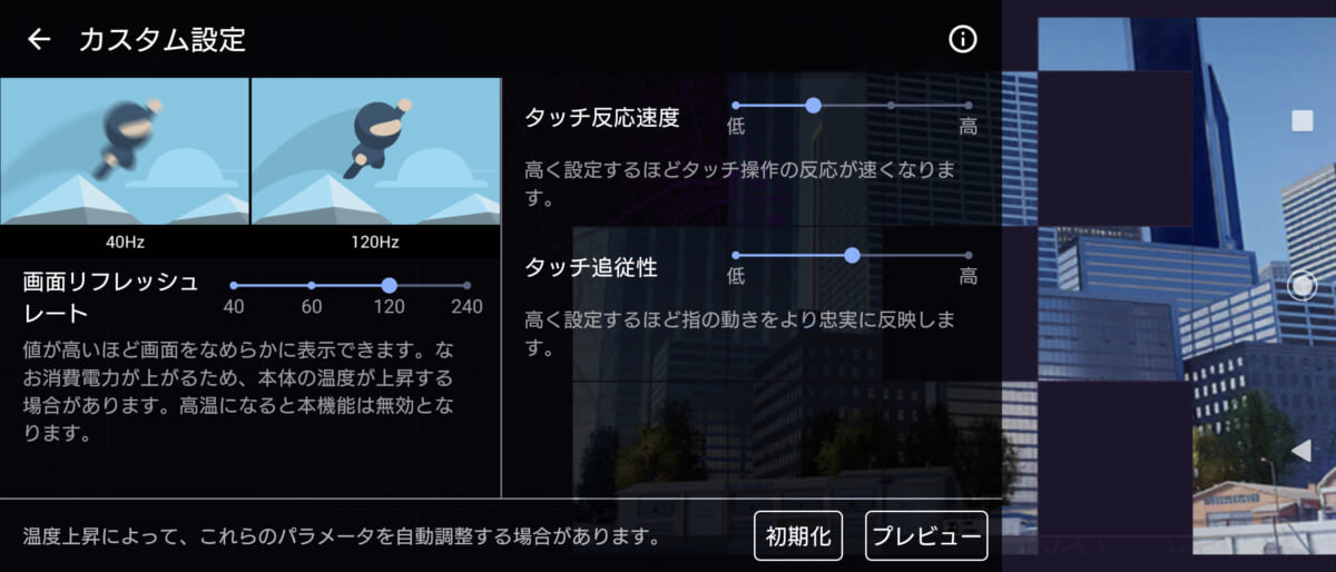 ゲーム系コンテンツの場合は独自の「ゲームエンハンサー」機能により「最大画面リフレッシュレート」やパネルのタッチ応答速度・追従性をブーストできる機能があります。モバイルゲームの「Call of Duty」をプレイしてみましたが、高精細なグラフィックスの描画がモタつくことはありません。タッチ操作に対するパネルの感度の良さも実感できました。