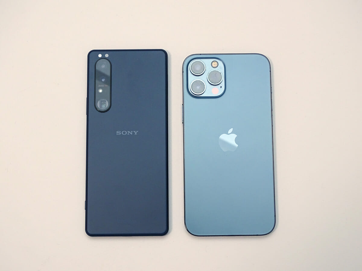 6.5インチのXperia 1 IIIを、6.7インチの有機ELディスプレイを搭載する「iPhone 12 Pro Max」の隣に並べてみました。Xperiaの方が縦に長く幅はスリムであることがわかります。大人の男性が片手で持ちやすいサイズ感を目指したそうです。
