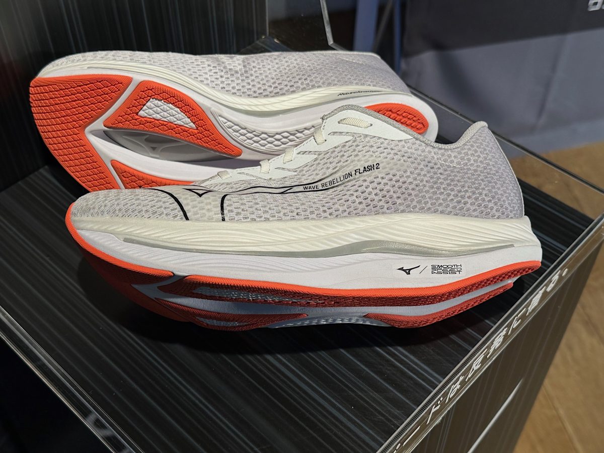 最後に紹介するのは、反発と安定を備えたレーストレーニングモデル、WAVE REBELLION SONIC 2。ランニングを始めてから少し時間が経ち、そろそろスピードを上げて走れるシューズを探している、というランナーにおすすめの一足です。今回は、細部の形状や素材にこだわり、前作から約20gの軽量化(片足27.0cm)に成功しました。